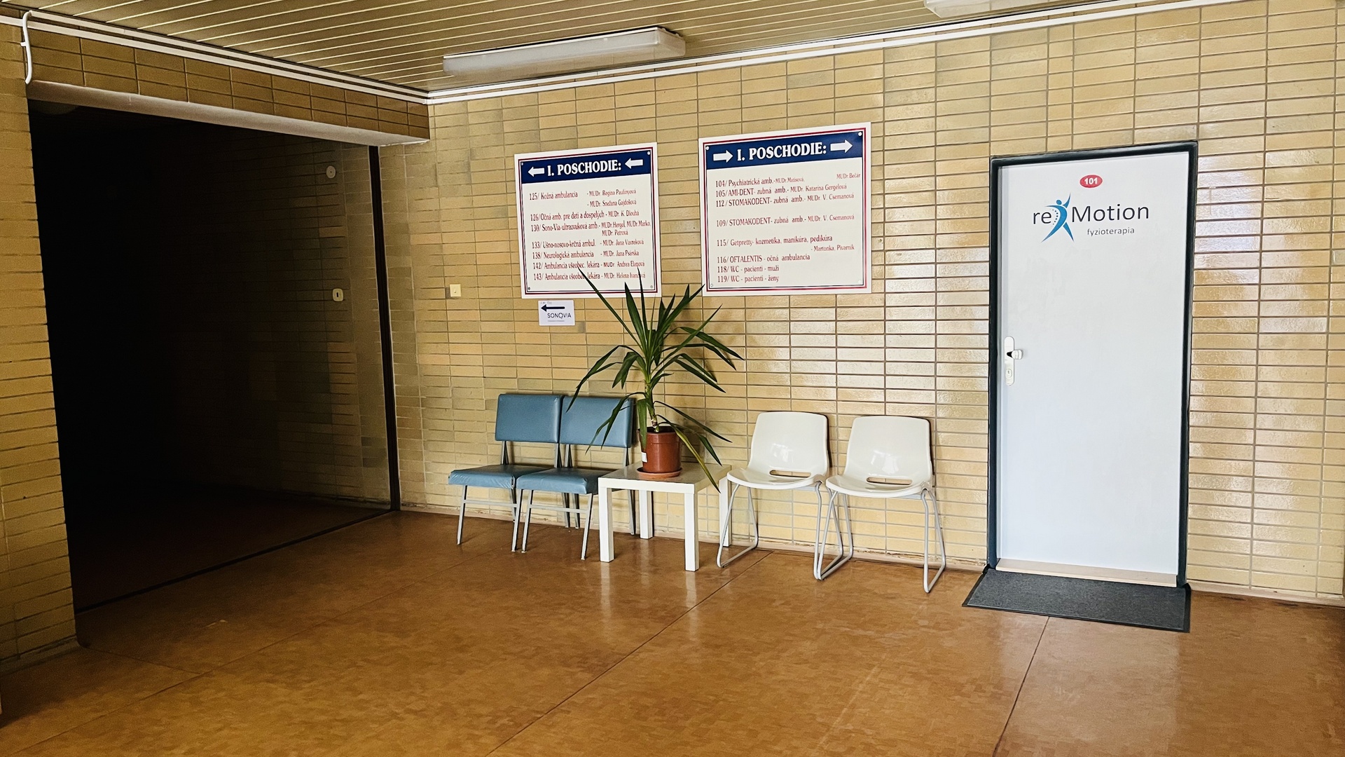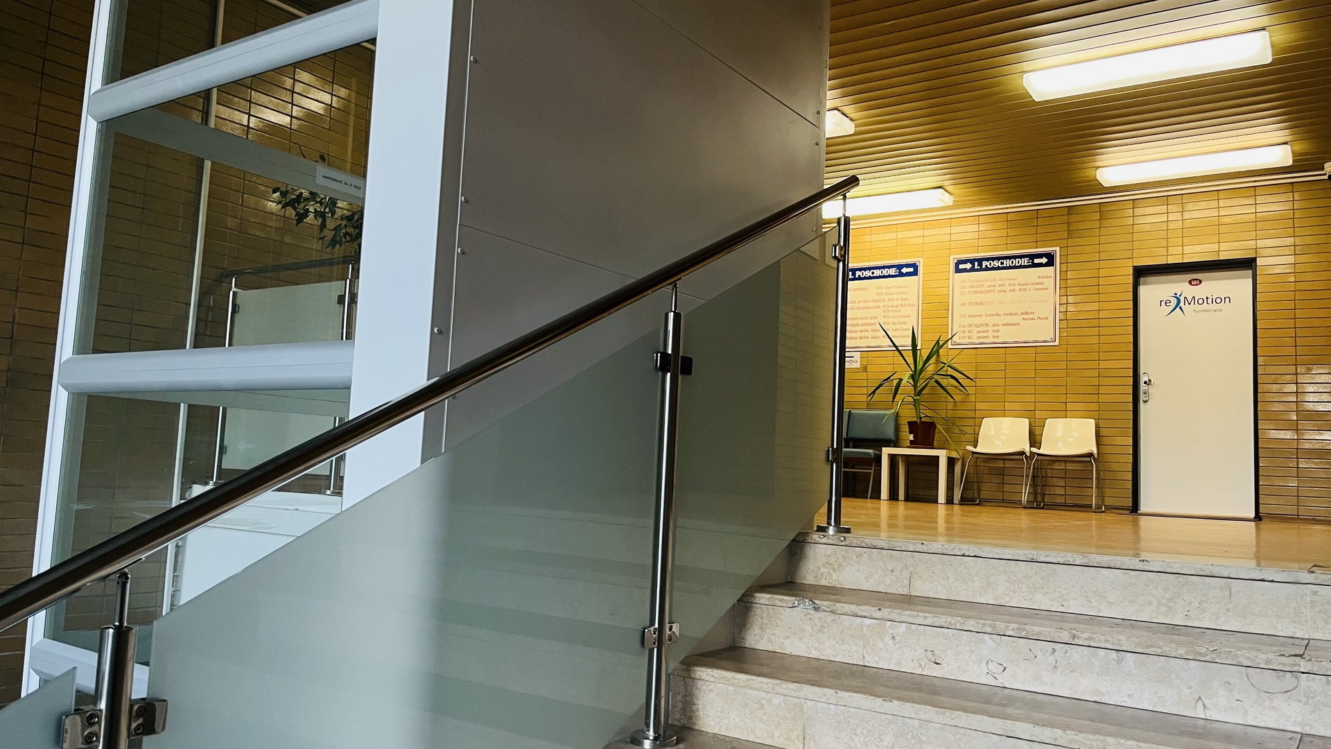 na 1. poschodí oproti výťahu.